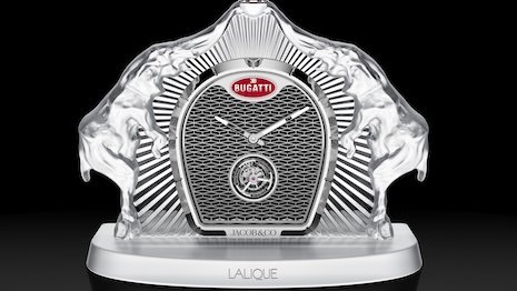 Together with New York watch and jewelry retailer Jacob & Co., the maisons have revealed the Bugatti Calandre table clock. Image courtesy of Lalique