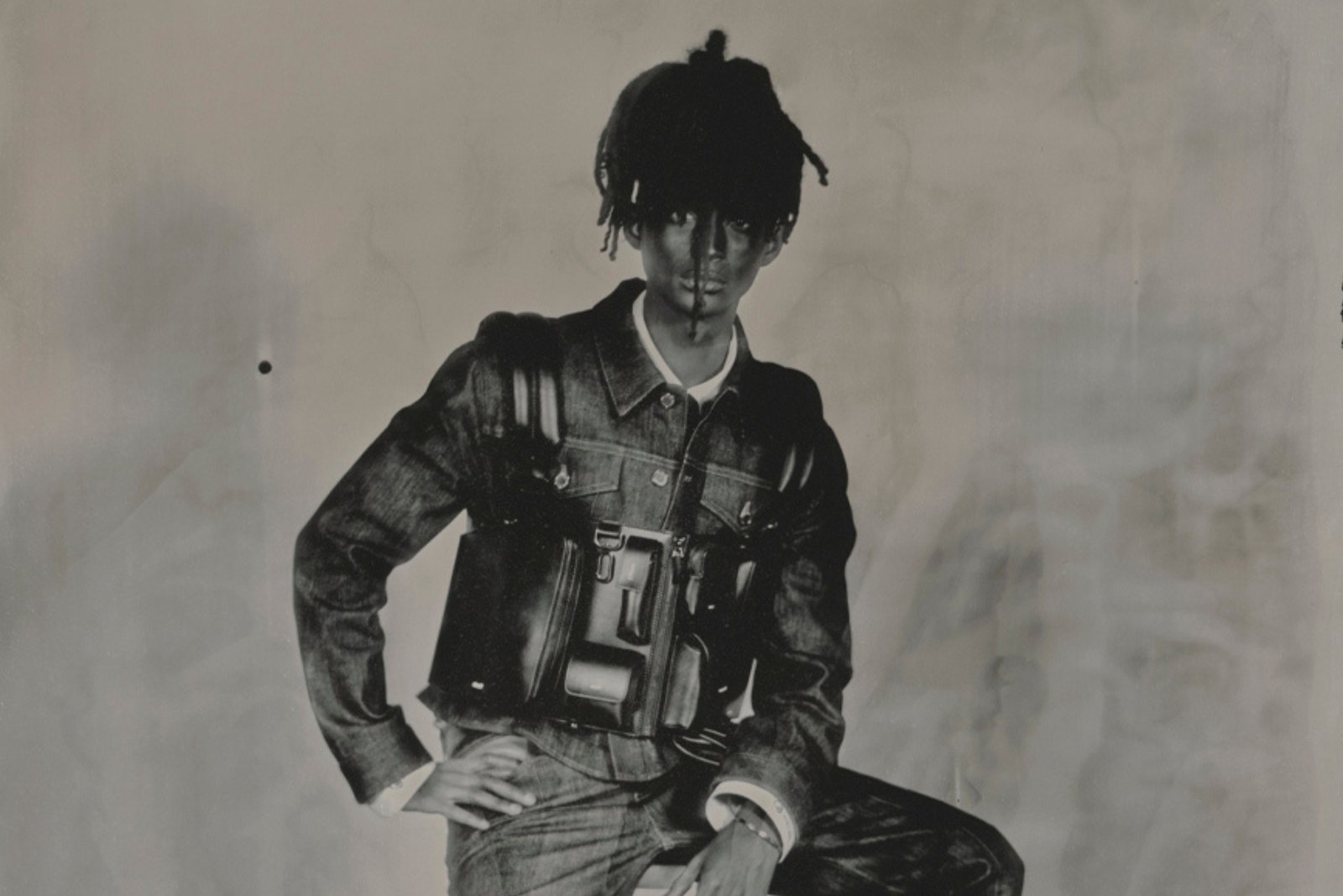 The exhibition also showcased an Angel sculpture from Christian Louboutin’s personal collection. It was featured in the first shoot with Jaden, and now serves as a marker of their collaboration, which began with a simple conversation in 2019. Additionally, a photographic installation showed Jaden’s designs captured using photographic methods from the 1800s, hand-developed under cloth with the traditional mix of silver and chemical solutions.