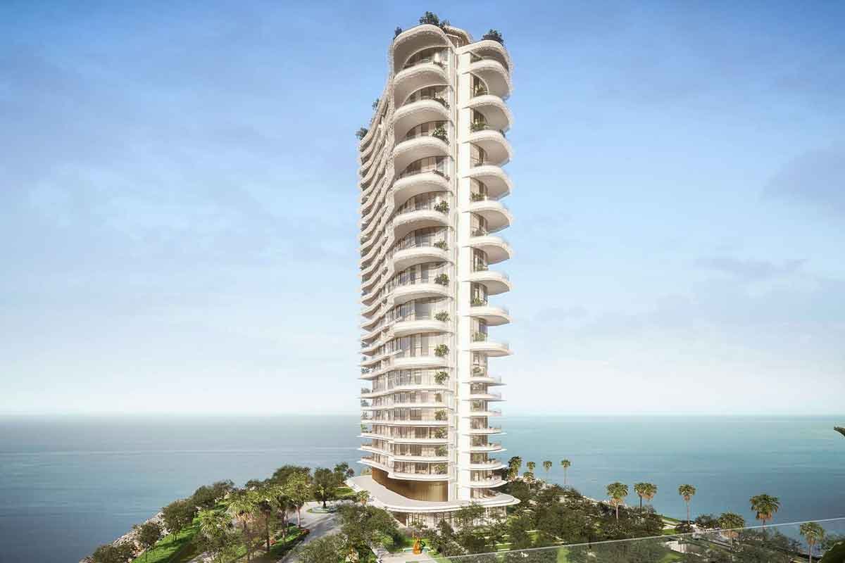 The tower features a coral-like façade, panoramic views of the Arabian Gulf and Downtown Dubai, and interiors finished with Italian marble, hand-laid silk panelling, and warm oak accents. Each residence includes private infinity pools, double-height salons, and expansive terraces, merging resort-style luxury with urban privacy.