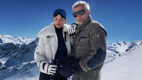 Snow-covered landscapes and blue skies serve as the backdrop of the new promotional imagery. Image credit: Moncler/Mario Sorrenti